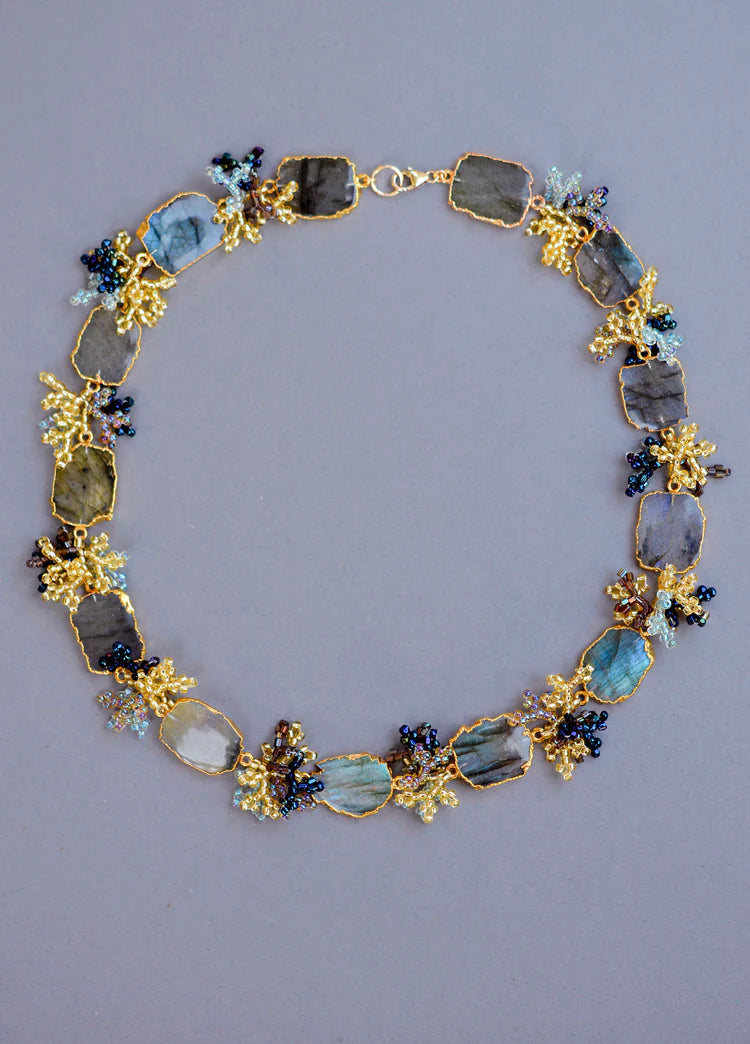 GEMNIA emerged from Coralized, our previous business name and jewelry line, where every piece was meticulously hand-sewn using tiny glass beads and gemstones. Since these pieces tend to be a one-of-a-kind, we typically only sell them at art fairs or by comission. Please contact us or check out our show schedule to get your very own Coralized piece!